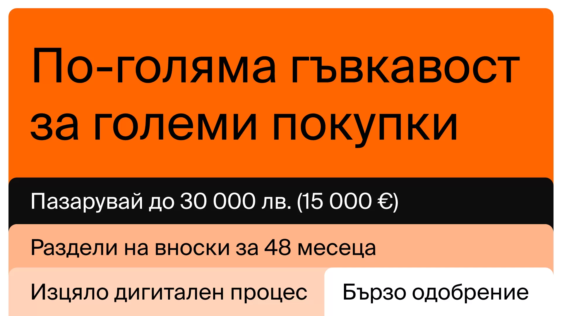 - Период на изплащане от 3 до 48 месеца