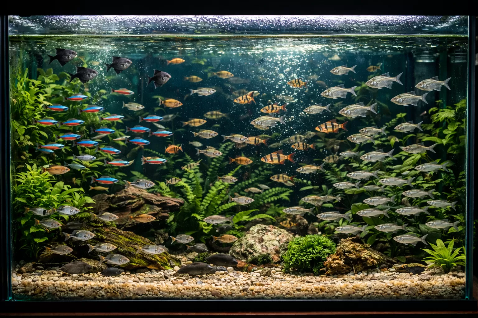 • Спазвайте правилото: 1 см риба на литър вода като ориентир за малки и средни видове.