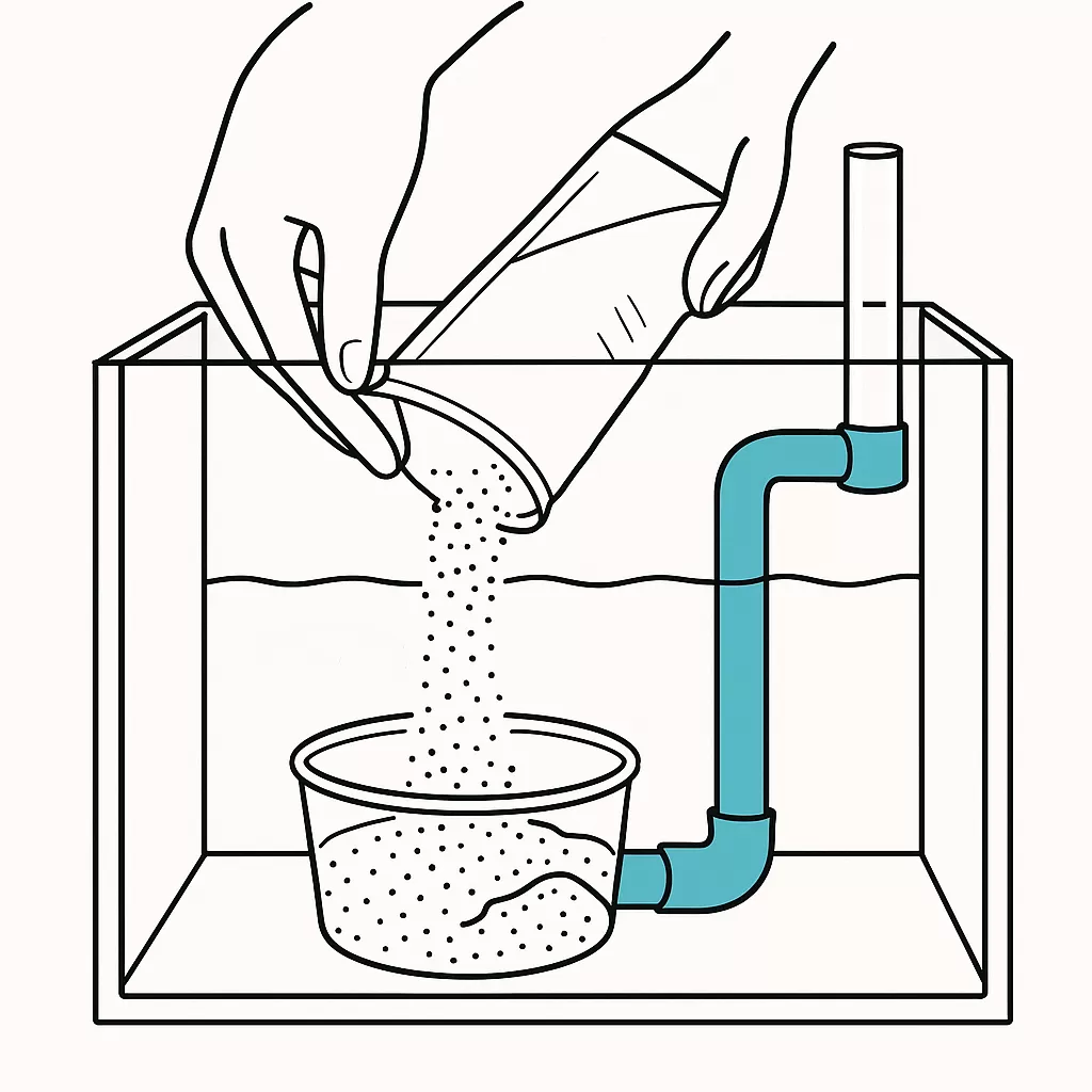 Колкото по-фин е пясъкът, толкова по-добър е ефектът. Едрите частици често запушват системата. Не прекалявайте с дебита на въздуха. Ако е твърде силен, пясъкът ще се разпръсква из целия аквариум. Поддържайте системата. От време на време ще се налага да добавяте пясък и да почиствате входа на тръбата. Избягвайте "жив пясък" или богат на органика – може да влоши качеството на водата.