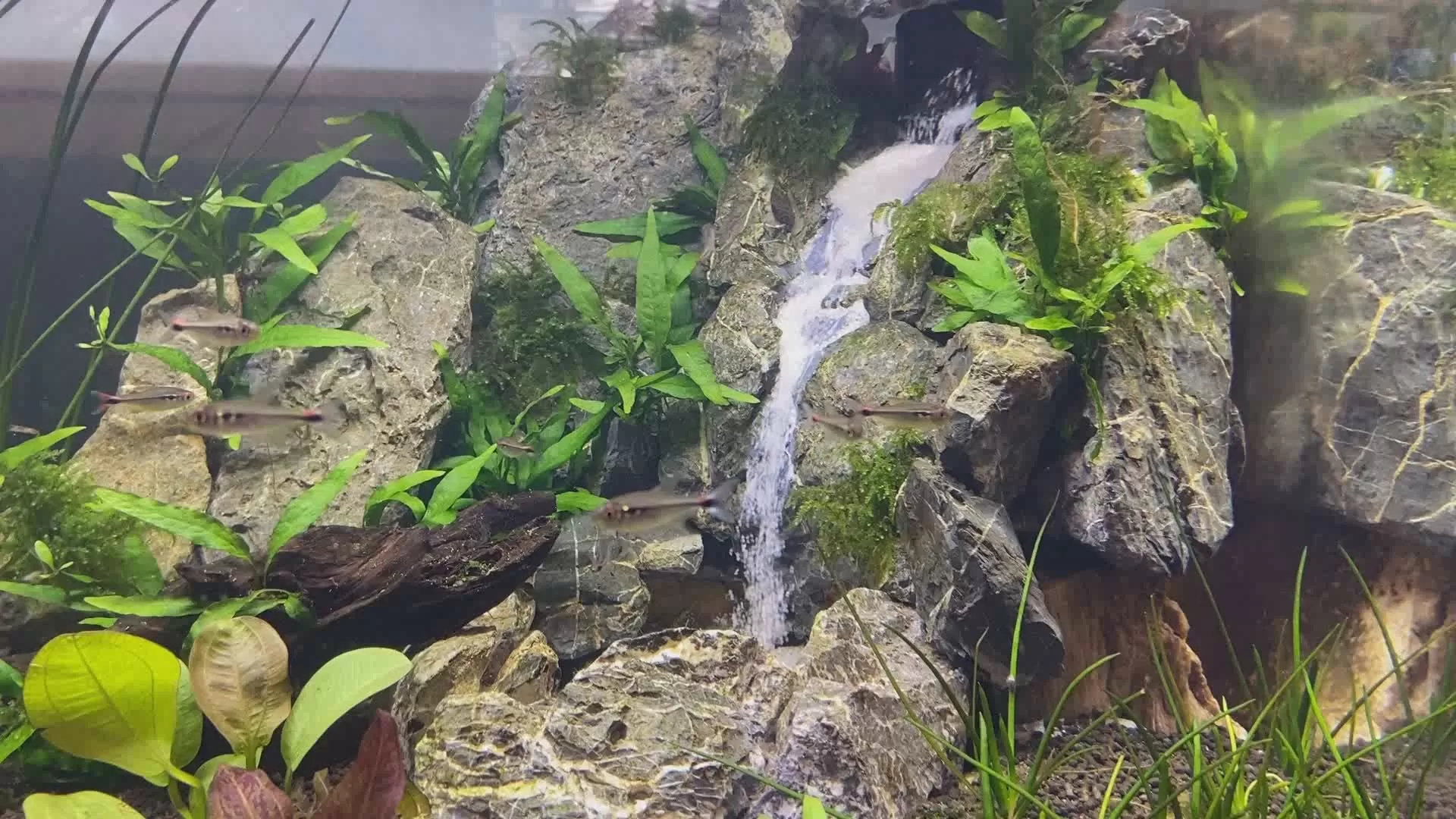 Изберете място в аквариума, където водопадът ще изглежда естествено – например в скален фон или встрани до корен.
