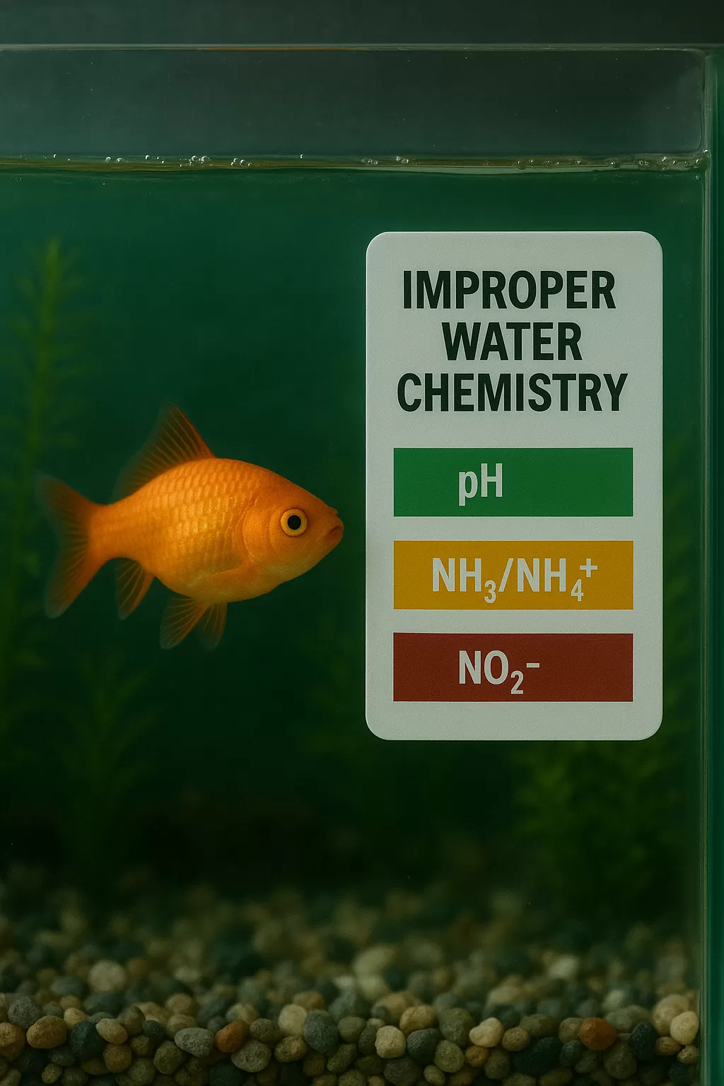 Не всички риби се чувстват комфортно в същите условия на водата. Често начинаещите не обръщат внимание на pH, твърдостта на водата или нивата на амоняк и нитрати, което води до стрес и заболявания на рибите.